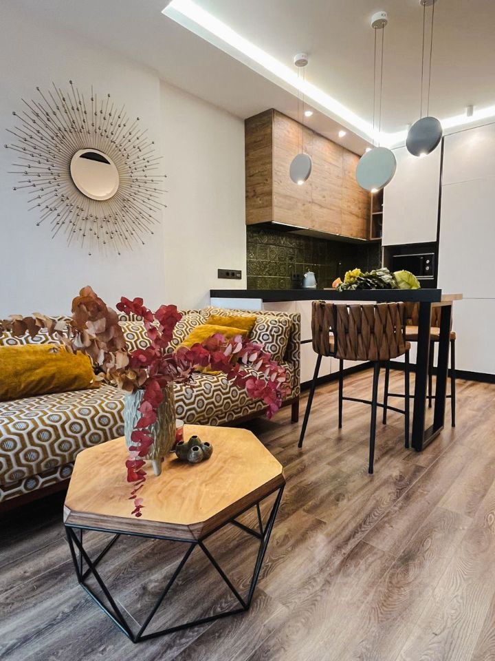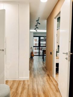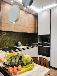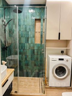 Внутри полностью оборудованная кухня с посудой, посудомоечная машина, кондиционер и другая бытовая техника для комфортного проживания. Квартира уже готова к заселению!