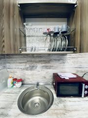 Имеется посуда, бокалы, штопор полотенца, гeль для душа, шампунь,