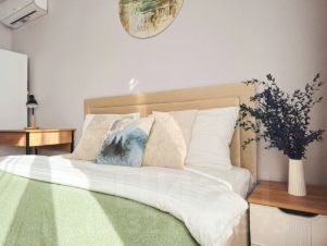 - Двуспальная кровать, удобный матрас с чистым постельным бельём,