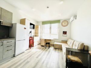 Полностью меблирована: Вам не придется тратить время и силы на обустройство. Студия уже оборудована всем необходимым для комфортного проживания от раскладного дивана до современной бытовой техники. Заезжайте и живите!