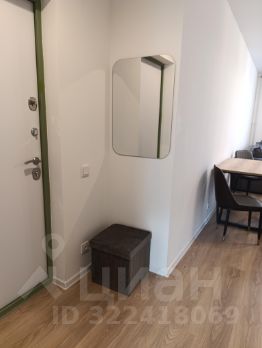 Прихожая: шкаф, пуф, зеркало.
