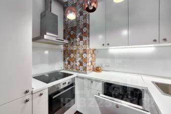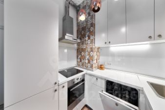 В кухне установлен холодильник, электрическая варочная панель, вытяжка, встроенные духовой шкаф и микроволновка, посудомоечная машина.