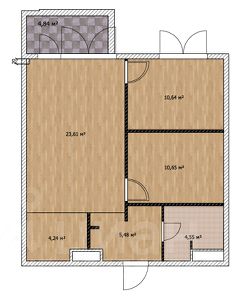 Квартира, общей площадью 64 м2 , две изолированные комнаты, площадью 10,6 м2, 10,6 м2, кухня - гостиная площадью 28 м2, прихожая с вместительным шкафом , совмещенный санузел с душевой кабиной, открытая терасса, площадью 5 м2.