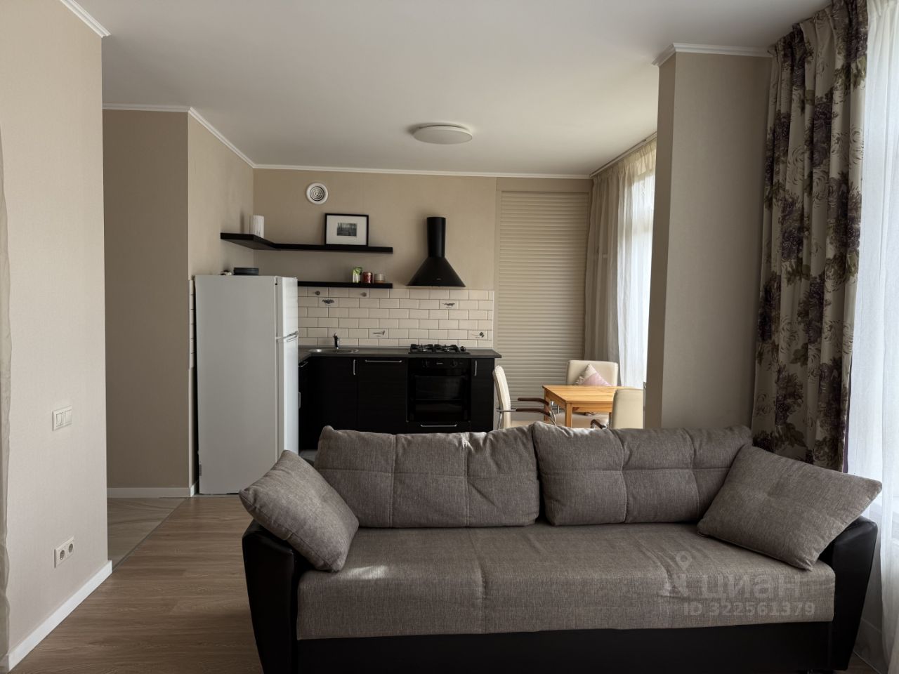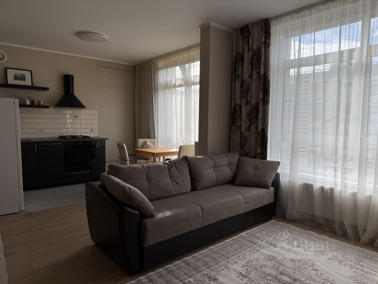 Сдаётся уютная студия 40 м² с большими окнами и французским балконом.