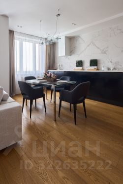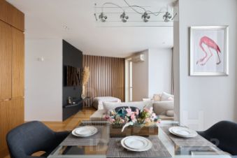 Просторная квартира на 25 этаже с современным ремонтом в стиле хай-тек, который отличается престижностью и эффектным внешним видом.