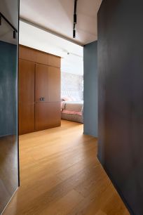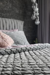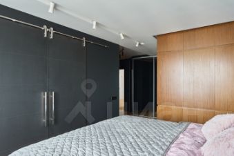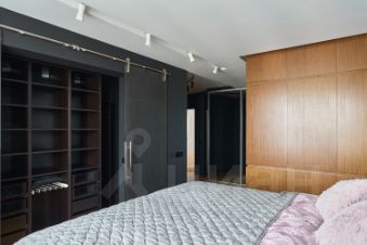 Кровать в спальне с матрасом высотой 1 метр (1 метр, Карл!). Удобная гардеробная и дополнительный встроенный шкаф до потолка для повседневной одежды.