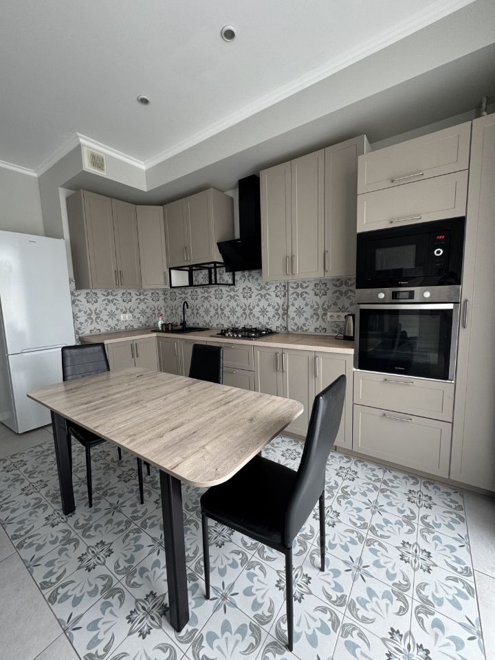 Функциональная планировка, изолированные комнаты, совмещенный и раздельный санузлы. Светлая и уютная гостиная с большим шкафом и двумя кроватями. Просторная спальня с большой кроватью, шкафом и выходом на балкон. Удобная кухня-гостиная с современной техникой и обеденным столом. В каждой комнате есть кондиционер. Окна выходят во двор, тихие соседи.