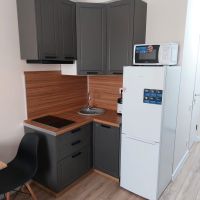 Предлагаем для проживания стильную светлую студию с новой мебелью и техникой. Дом монолитно кирпичный относительно новый, расположен в ЖК Лесной уголок на закрытой территории со своим водоёмом, уточками и ландшафтным дизайном территории, детскими и спорт площадками. также на территории комплекса и сразу перед въездом имеется всё необходимое: магазины, аптеки, пункты доставки, банки. Студия сдаётся впервые- всё абсолютно новое, свежий ремонт, новый ортопедический качественный 2х спальный диван ( спальное место 160) аккордеон. Новый высокий холодильник системы no frost( самоочищающийся,не капельный); новые: микроволновая печь, встроенная варочная панель,вытяжка, кондиционер, стиральная машина. В студии имеется достаточно много мест хранения, что позволит с комфортом разместиться паре. Санузел более чем просторный по площади, что может приятно удивить.