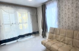 В квартире выполнен евроремонт, что придаёт ей современный и стильный вид. Высота потолков составляет 2.72 метра, что создаёт ощущение простора. В квартире есть всё необходимое для комфортного проживания: мебель на кухне и в комнате, а также современная техника — холодильник, телевизор и стиральная машина. Санузел совмещённый и оборудован ванной. Также в квартире есть лоджия, где можно отдохнуть или устроить мини-сад.