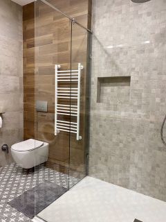 Стильная квартира с действительно качественной отделкой в ЖК бизнес класса. Дизайн квартиры выдержан в спокойных серо-бежевых тонах. Трехметровые потолки и панорамные окна наполняют помещение светом и воздухом. Обеденная зона объединена с гостиной 25кв.м. Элегантная кухня со всей необходимой встроенной техникой: посудомоечной машинкой, духовым шкафом, вытяжкой и т.д. В спальне двуспальная кровать 180х200 и гардеробная комната. В прихожей вторая гардеробная. Лоджия с панорамным остеклением (10 кв. м) идеальна для летних завтраков и отдыха. Просторная ванная комната. Квартира идеальна для проживания пары.