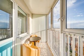 Видовая полностью оборудованная квартира студия на 21 этаже рядом с ikea и тц мега в престижном доме жк менделеев, окна на лес (в лоджии окна от пола до потолка).