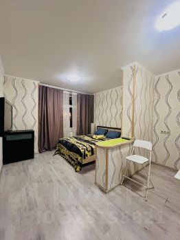 Квартира: Светлая студия с простым свежим ремонтом. Всё необходимое для комфортного проживания: спальная зона, гостиная и компактная кухня.