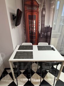 Предоставляется вся бытовая тенхника-чайник, микроволновка, гладильная доска и утюг, пылесос. А также посуда-наборы тарелок, приборов, посуды.