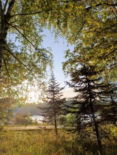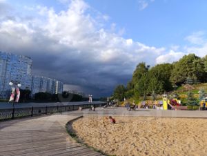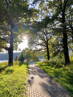 Парк очень красивый и благоустроенный. Две большие детские площадки и трек для катания на велосипеде и самокате прямо в парке, на берегу реки.