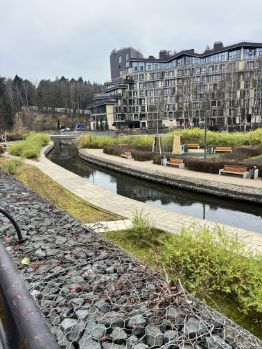 Жилой комплекс расположен в долине реки Сходня с благоустроенными набережными вдоль реки и зовут погулять, побегать или просто помечтать. Территория оборудована тренажерами, спортивными и детскими площадками!