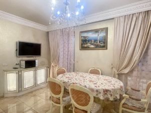 В гостиной итальянская мебель в классическом стиле, где можно отдыхать и смотреть телевизор.