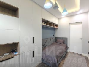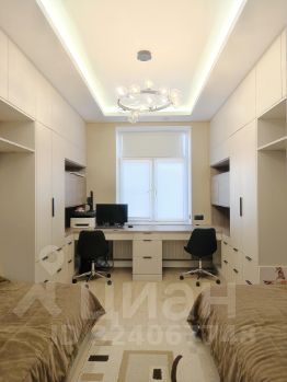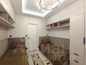 В детской комнате стоит пара кроватей и симметричные секции для хранения вещей и установки декора. Подготовлены места для учебы. В соседней комнате подготовлено спальное место, место для работы или учебы и шкафы для личных вещей.
