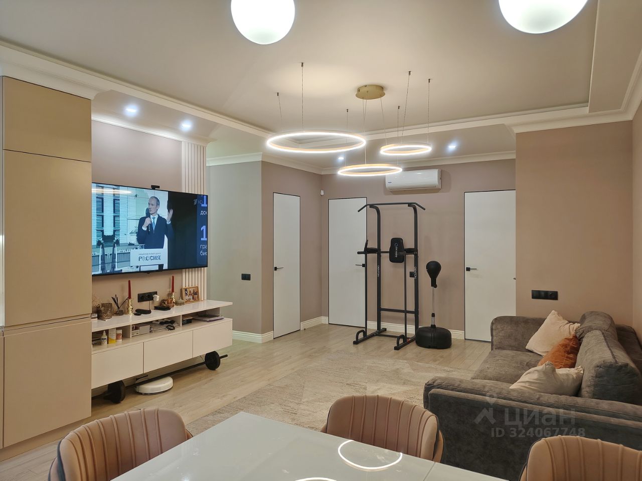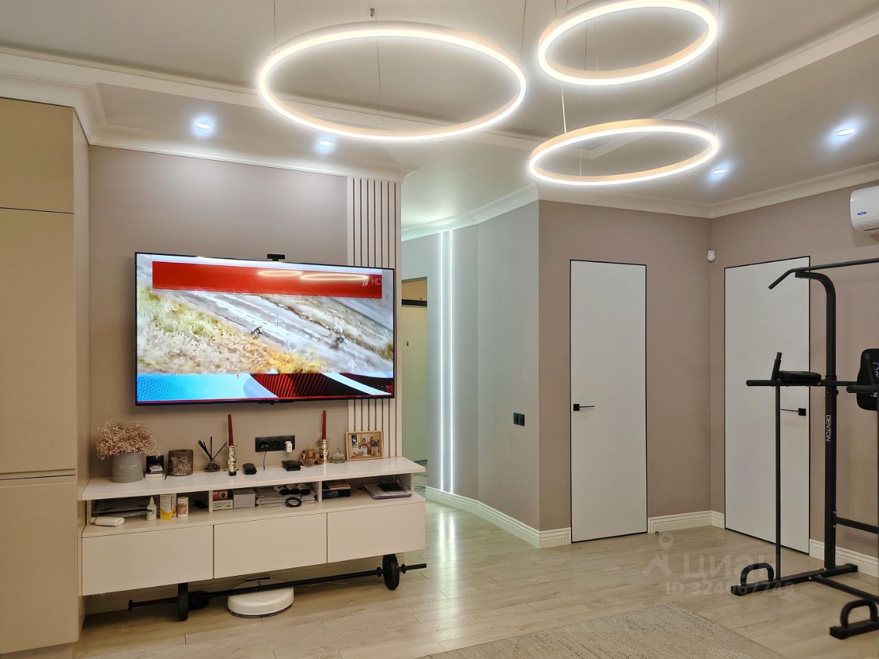 Гостиная встречает простором, атмосферными подсветками удобным диваном и большим телевизором. Предусмотрен кондиционер.