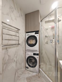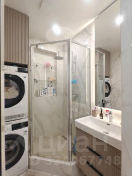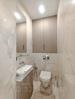 В туалете инсталляция, рукомойник, зеркало и места для хранения бытовой химии. В ванной комнате установлены стиральная и сушильные машины. Зеркало с контурной подсветкой и широкая душевая. В светлом коридоре предусмотрены, как вешалки для верхней одежды, так и несколько вместительных шкафов.