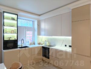 На кухне установлен качественный гарнитур со встроенным холодильником, морозильной камерой, духовым шкафом, варочной панелью, микроволновой печью, посудомойкой. Столешница и фартук из керамогранита. Подсветка рабочей зоны. Фильтры питьевой воды. Большой кухонный стол с удобными креслами. Из кухни предусмотрен выход на балкон с видом во внутренний благоустроенный двор.