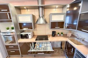— Техника: холодильник, плита, микроволновка, чайник, ТВ, стиралка, фен, утюг