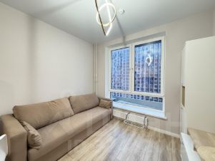 В квартире сделан качественный евроремонт. В комнатах и на кухне есть вся необходимая мебель,(кровать, шкаф, стиральную машинку собственник готов докупить под клиента) а также современная техника: кондиционер, холодильник, посудомоечная машинка. Ванная комната оборудована ванной, санузел совмещённый. Окна выходят во двор, что обеспечивает тишину и спокойствие.