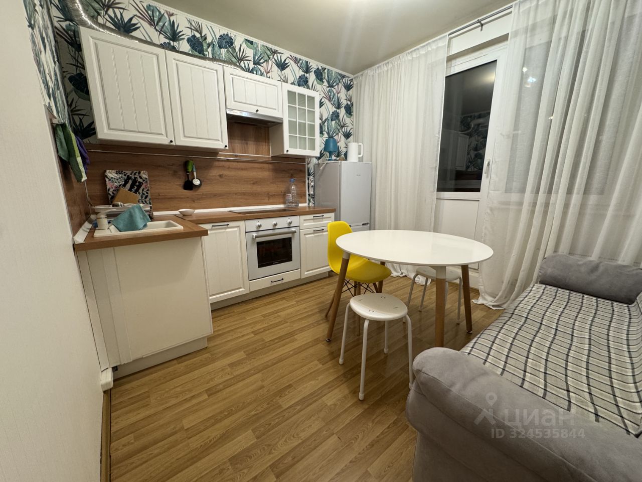 Сдаётся в аренду уютная однокомнатная квартира в Химках, район Новокуркино, по адресу Молодёжный проезд, 8. Площадь квартиры составляет 43 кв. м, из которых 27 кв. м — жилая площадь, а 10 кв. м занимает кухня. Расположена на 4 этаже 25-этажного монолитного дома 2007 года постройки. Высота потолков — 2.7 метра.
