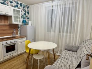 Квартира с евроремонтом, полностью готова для комфортного проживания. В комнате и на кухне есть вся необходимая мебель. Кухня оснащена современной техникой: холодильник, посудомоечная машина и стиральная машина. В ванной комнате установлена душевая кабина, поэтому можно наслаждаться современным комфортом. Окна выходят на улицу, а на балконе можно отдохнуть на свежем воздухе.