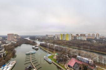 В гостиной панорамные окна в пол с шикарным видом на канал им. Москвы, Яхт клуб и бассейн.