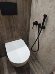 Современный санузел с душем, качественной сантехникой и тёплыми полами