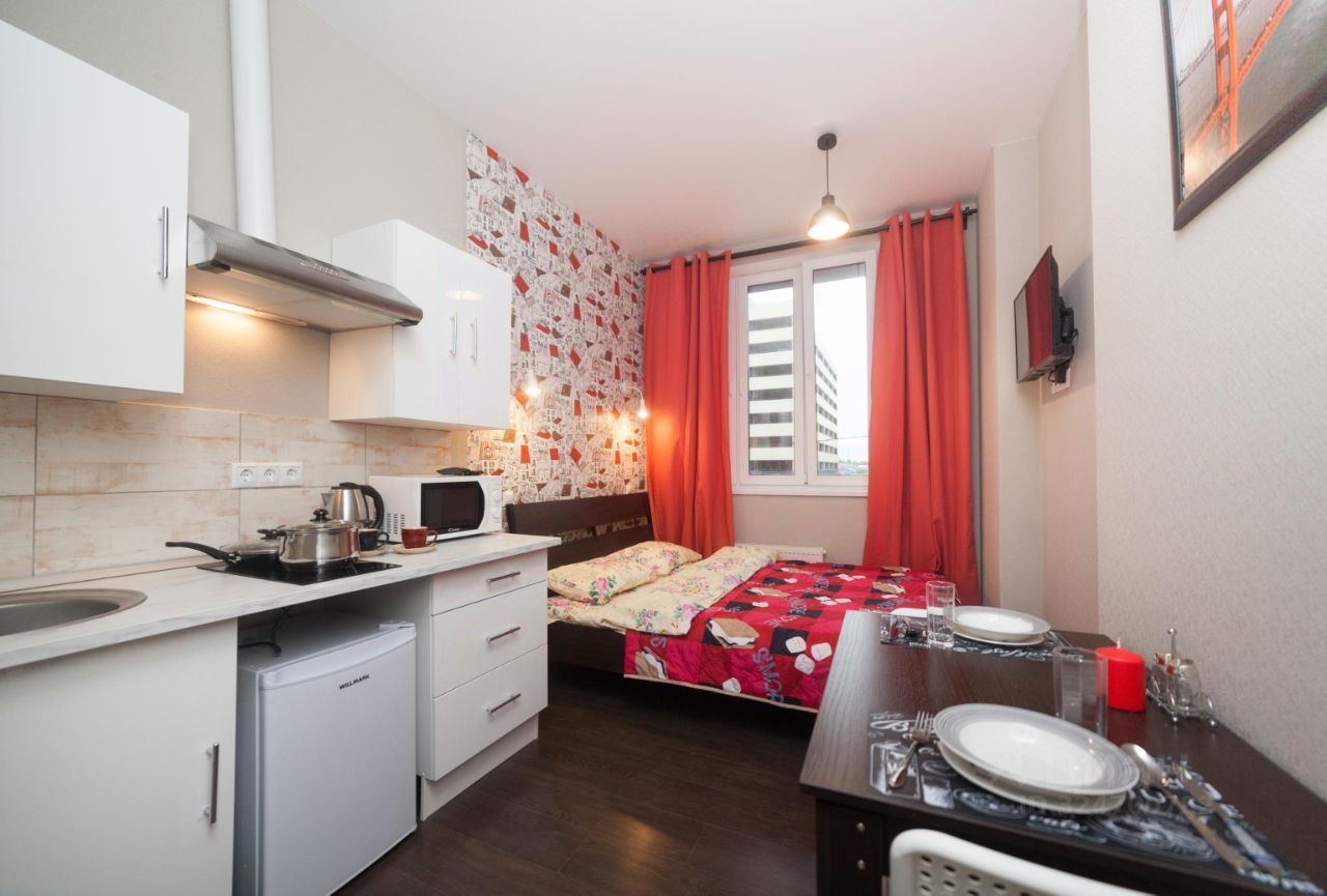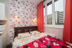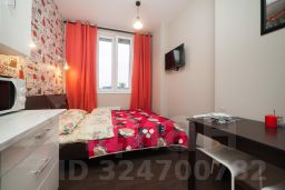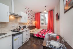 В апартаментах: двуспальная кровать, телевизор, кухонная зона, холодильник, электрический чайник, стиральная машина, электрическая плита, фен.