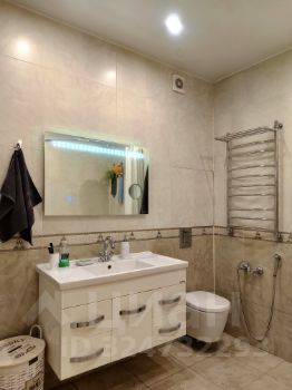 В ванной комнате установлена большая ванная, тропический душ, сделана инсталляция, установлены полотенцесушитель и гигиенический душ. Удобная раковина над которой размещено зеркало с подсветкой. Так же имеются стиральная машина, места для хранения полотенец и бытовой химии. Предусмотренна принудительная вентиляция.