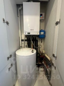 - кухня со стильным современным гарнитуром и техникой, большой обеденный стол с удобными стульями, встроенные шкафы со стиральной машиной, новым котлом для индивидуального отопления, накопительным баком для подачи горячей воды;