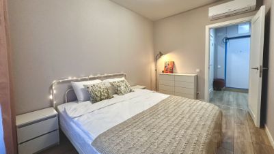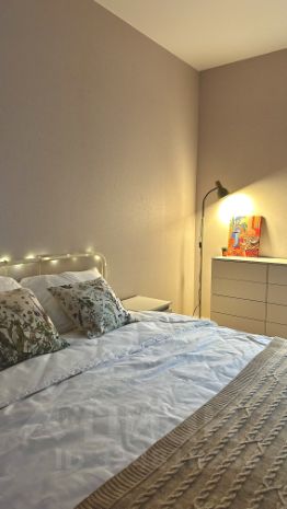 В квартире тепло, уютно, а большая гардеробная позволит спрятать все вещи и чемоданы с глаз.