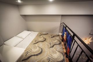 Удобства: двуспальная кровать, заправленная свежим постельным бельем и двуспальный диван.