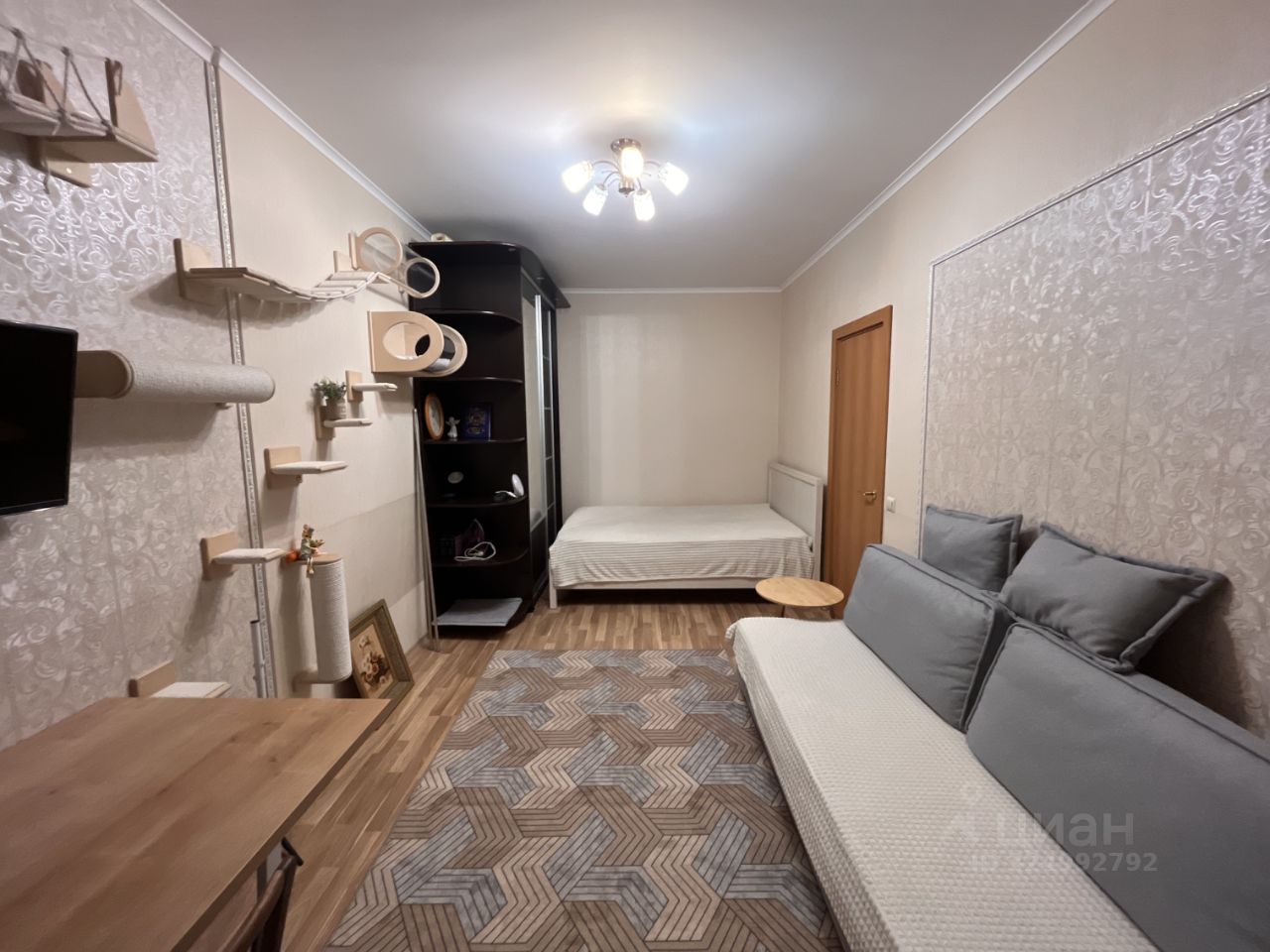 В комнате вместительный шкаф, большая двухспальная кровать с новым пружинным матрасом средней жесткости, диван, большой рабочий стол, есть настенный комплекс для кошек (можно будет снять, если вам не нужен).