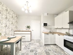 В отделке и техническом оснащении использованы качественные материалы. Квартира оснащена мебелью, бытовой техникой, стильным текстильным наполнением - удобная кровать, раскладные диваны с ортопедическим основанием, ПОСУДОМОЕЧНАЯ и стиральная машины, микроволновая печь и т.д.