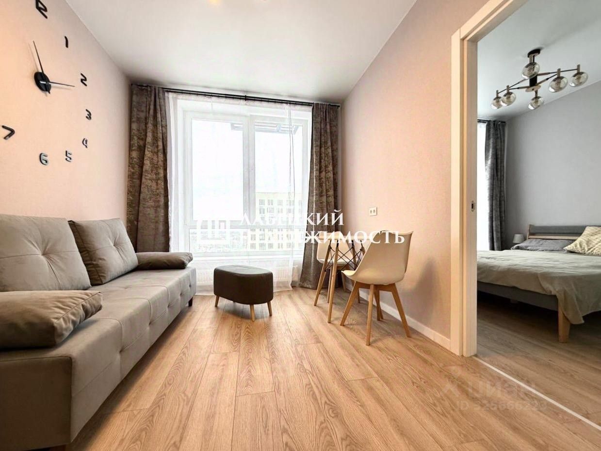 Максимально комфортное и обустроенное пространство для жизни: просторная кухня-гостиная, изолированная спальная, с/узел совмещенный с ванной, в прихожей - шкаф, обувница и вешала для верхней одежды. Кухонный гарнитур с большой рабочей поверхностью, есть вся необходимая техника: духовой шкаф, варочная поверхность, холодильник, посудомоечная машина, микроволновая печь и чайник. Уютная зона гостиной с двумя источниками света, диван раскладывается. В спальной кровать шириной 160см, прикроватная тумба и четырех-створчатый шкаф. В санузле установили стиральную машину, корзину для белья, зеркальный шкаф и множество крючочков, - все для удобства проживающих. Установлен кондиционер.