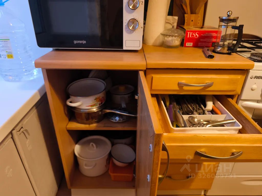 На кухне холодильник, чайник, микроволновка, газовая плита, духовка и вся необходимая посуда для приготовления и сервировки.