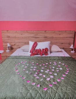В комнате: 1 двухспальная или 2 односпальные кровати (по запросу), прикроватные тумбочки с прикроватными светильниками, письменный стол, стулья, платяной шкаф, стеновая панель для верхней одежды, напольная тумба, зеркало в полный рост, телевизор, Wi-fi, вентилятор, мансардное окно с москитной сеткой (3 этаж) или обычное окно с москитной сеткой (2 этаж), постельное белье, полотенца, тапочки.