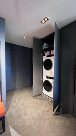 - В прихожей большой шкаф для хранения, стиральная и сушильная машина. В прихожей также установлен теплый пол.