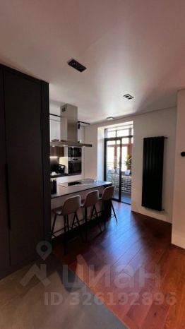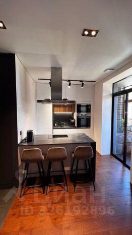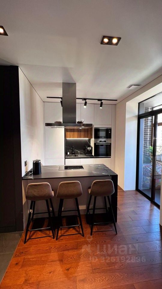 - Кухня с островом и выходом на утепленную лоджию с теплыми полами. Посудомойка, холодильник, чайник, микроволновка, духовка, варочная индукционная панель, мощная вытяжка, мультиварка, соковыжималка, гриль, блендер, а также вся посуда, в том числе столовые приборы, кастрюли, сковороды, фужеры, бокалы.
