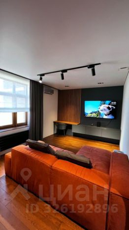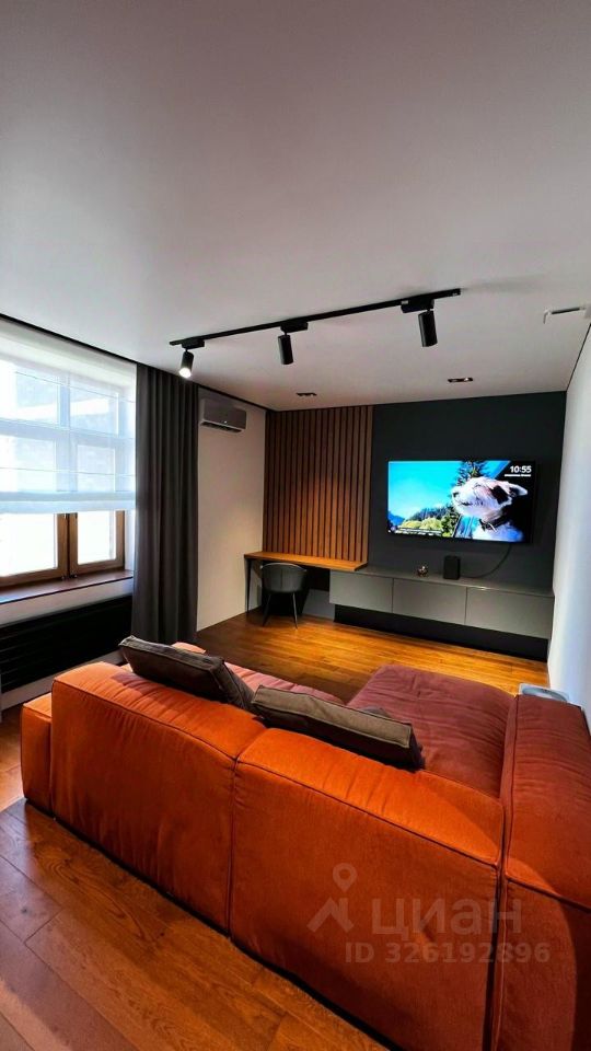 - Гостиная с огромным плоским телевизором и ультраудобным модульным диваном, рабочим столом, кондиционером.