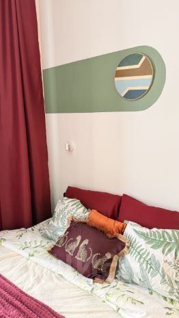 Современная отделка: Приятная авторская цветовая гамма (зеленый с бордовым), создающая гармоничную и спокойную атмосферу.