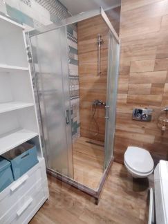 Санузел совмещённый. Есть хорошая стиральная машина.