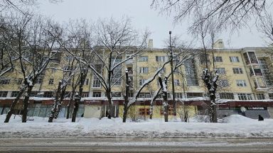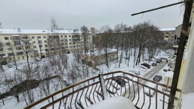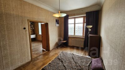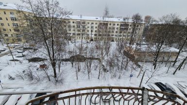 Окна квартиры выходят на две стороны, кухня и изолированная комната - на улицу, три смежные - комнаты во двор.