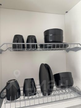 Встроенный кухонный гарнитур ,фильтр для воды , духовой шкаф , эл.плита , микроволновая печь , холодильник , обеденный стол , диван -кровать (раскладывается ), кондиционер , стиральная машинка , большой шкаф для вещей ,телевизор смарт, интернет имеется и подключен