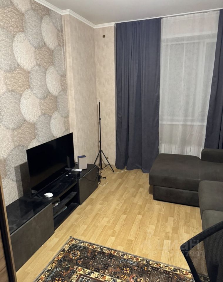 Тёплая, аккуратная, с удобной планировкой: отдельная комната с большим диваном, кухня с обеденной зоной, полноценная ванная.