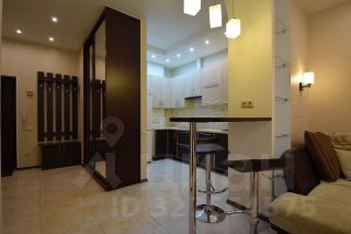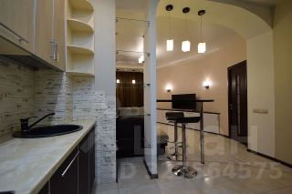 Кухня площадью 8 м² оснащена необходимой бытовой техникой, включая телевизор. В санузле установлена современная сантехника и ванна.