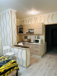 Квартира: Светлая студия с простым свежим ремонтом. Всё необходимое для комфортного проживания: спальная зона, гостиная и компактная кухня.